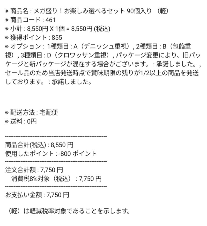 何よりも、30個注文だと、パン1個の価格が100円以上しますが、90個注文だと100円以下だったので、我が家には90個まとめ買いが断然お得です!